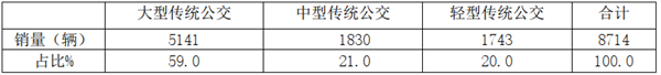 根据上牌数据,2019年按大中轻划分,传统公交市场结构: