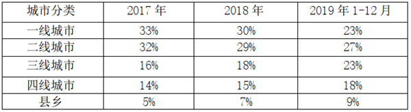 2、一些三四线城市和发达的县乡,由于国务院《打赢蓝天保卫战三年行动计划》的下发,各地方政府开始制定具体措施,2019年和2020年是执行此计划的重要年份,各三四城市及发达的县域公交也都会积极采购新能源客车,导致了三四线城市和发达县乡新能源公交占比的上升。