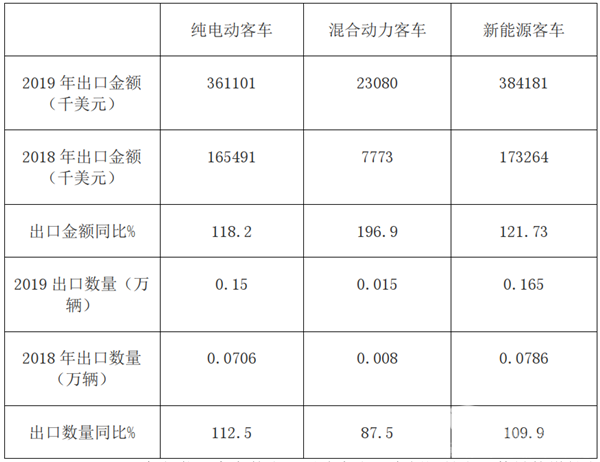 一、2019年客车出口市场同比增长超两位数,扭转了近年来客车出口同比一直下降的局面