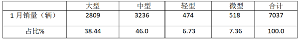 根据上牌信息,2020年1月按大中轻微划分,其销量占比: