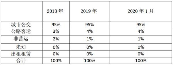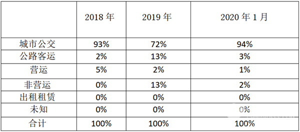 根据中国汽车流通协会市场研究统计数据,2020年1月及近2年新能源客车按用途划分销量权重结构如下: