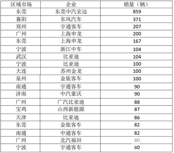 根据上牌信息,2020年1月新能源客车销量前15名区域市场:表8