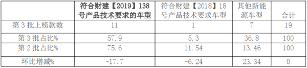 特点二、符合2019年补贴新政的车型为11款,占比57.9%,是本批次上榜车型中的主力阵营,但环比下降近17.7个百分点,