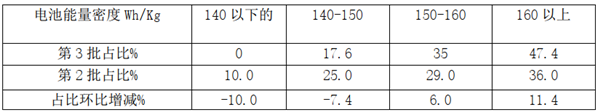 根据2020第3批《目录》数据统计计算,电池能量密度及占比如下:
