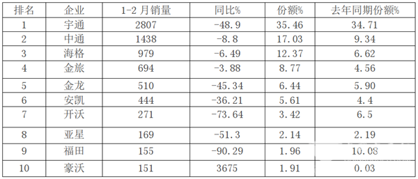 总之,多重压力叠加,2020年客车市场前两个月销量,严重受到了影响。