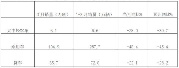 根据中汽协数据,2020年3月及1-3月大中轻客车销量、同比: