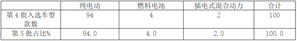 根据第5批、第4批目录数据,新能源汽车各细分车型入选款数及占比如下:
