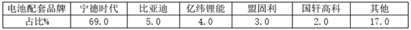 可见,从配套电池企业看,宁德时代占比69%,接近7成,一家独大。
