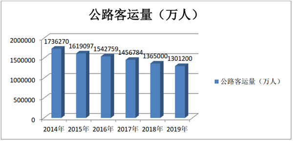 公路客运市场方面,2019年完成营业性客运量130.12亿人,比上年下降4.8%,完成旅客周转量8857.08亿人公里,下降4.6%。