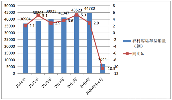 尽管近年公路客运市场整体低迷,但农村客运市场一直平稳发展(见下图,2020年1-4月尽管受疫情影响出现下降,但同比公路客运市场整体降幅要小很多,数据来源上牌信息)。2020年3月23日,交通运输部发布了《关于全力推进乡镇和建制村通客车工作确保完成交通运输脱贫攻坚兜底任务》的通知。《通知》指出,2020年是决胜全面建成小康社会、决战脱贫攻坚之年,具备条件的乡镇和建制村通客车是交通运输脱贫攻坚的兜底性任务,是交通运输行业向全社会作出的庄严承诺,必须如期实现。这意味着农村客运市场将再次迎来大好时机,为疫情后快速恢复客车市场提供了极好的机遇。对客车企业而言,也提供了一个重大的市场机会。