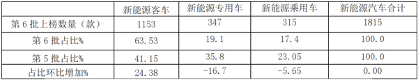 新能源客车入选本批次目录车型款数1153款,占比63.53%,占比环比增加24.38个百分点,是本批次《目录》中上榜占比第一大、占比环比增加最多的细分车型;充分说明随着国内疫情形势好转及一系列利好政策出台,车企申报的积极性空前高涨。