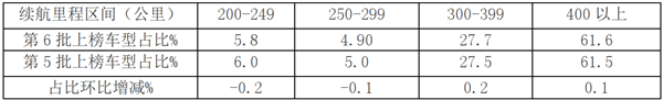 根据2020年第6批《目录》数据统计计算,新能源客车上榜车型续航里程分布及占比如下: