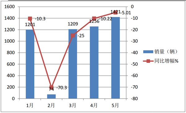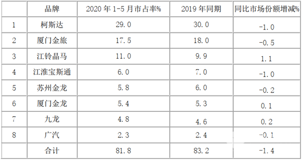 1-5月总体看,考斯特客车市场受疫情影响逐月消除,销量在逐渐恢复。