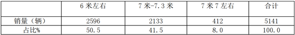 特征二、6米段销量占比超半壁江山,成为最受市场青睐的考斯特车型
