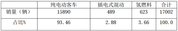 四、纯电动客车占据超9成,居于绝对老大地位,插电式混合动力客车占比不到3%,被边缘化趋势明显;氢燃料电池占比3.66%,也不是主力车型