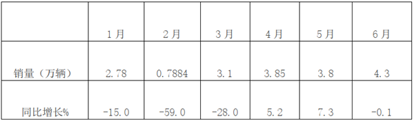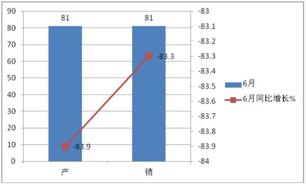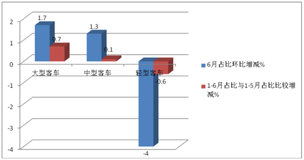 6月客车销量同比微弱下降0.1%,比5月的增幅7.3%收缩了7.4个百分点,说明6月客车市场并没有延续5月份的增长态势,而是出现了小波动;