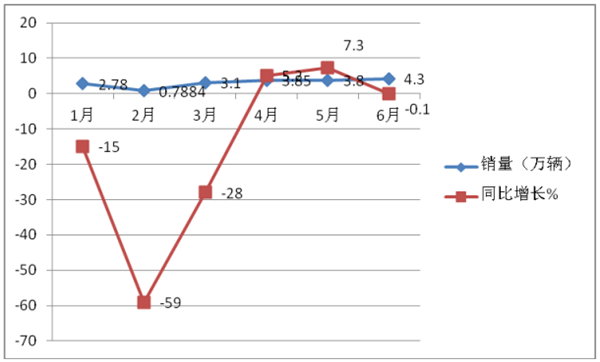 从图1看出,2020年1-6月客车市场各月的销量特点: