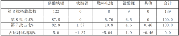 根据第8批目录统计,此批次上榜的新能源客车搭载的主要配套电池品牌占比: