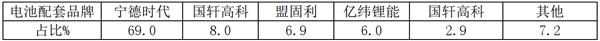 可见,从配套电池企业看,宁德时代占比69%,接近7成,一家独大。其次是国轩高科,再次是盟固利,但相对老大相差很远。