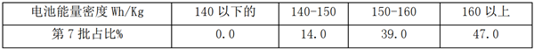 根据2020第7批《目录》数据统计计算,电池能量密度及占比如下:
