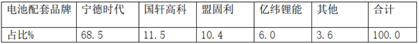 可见,从配套电池企业看,宁德时代占比68.5%,接近7成,一家独大。其次是国轩高科,再次是盟固利,但相对老大相差很远。