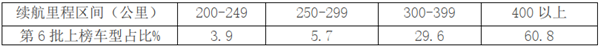 根据2020年第9批《目录》数据统计计算,新能源客车上榜车型续航里程分布及占比如下: