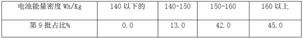 根据2020第9批《目录》数据统计计算,电池能量密度及占比如下: