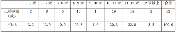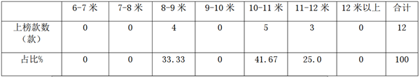 特点六、本批次上榜的12款燃料电池客车中,10-11米段车型最受青睐