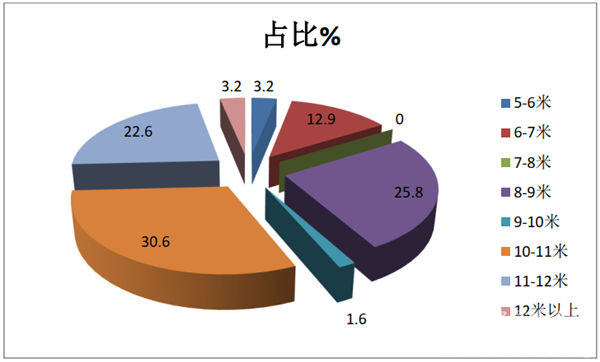 在本批次上榜的62款纯电动新品中,10-11米段占比超3成(30.6%),为最高,其次是8-9米,占比为25.8%,第三为11-12米,占比为22.6%,再次为6-7米,占比为12.9%,这一分析基本揭示了新能源客车在各细车型的市场占有情况,也就是说10-11米段纯电动客车是市场需求最大的车型,其次是8-9米,再次是11-12米。