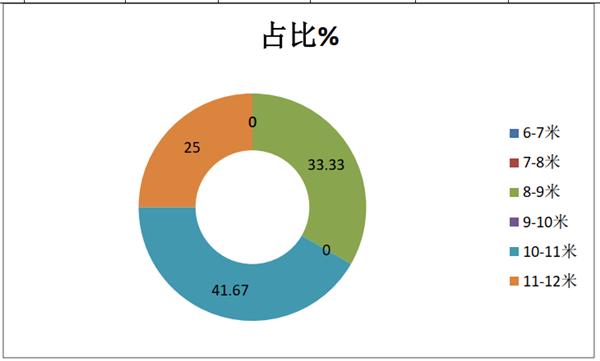 在本批次上榜的12款燃料电池客车新品中,10-11米段占比超4成(41.67%),为最高,其次是8-9米段,占比为33.33%,第三为11-12米,占比为25%,其他长度段均没有车型上榜(前燃料电池客车示范推广车型大部分都是10-11米和8-9米段车型)。因此,这一特点分析,再次说明,下一步燃料电池客车示范推广主要车型仍然可能是10-11米和8-9米段。