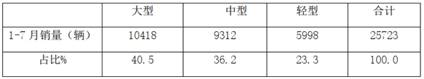 根据上牌信息,2020年1-7月按大中轻划分,其销量占比: