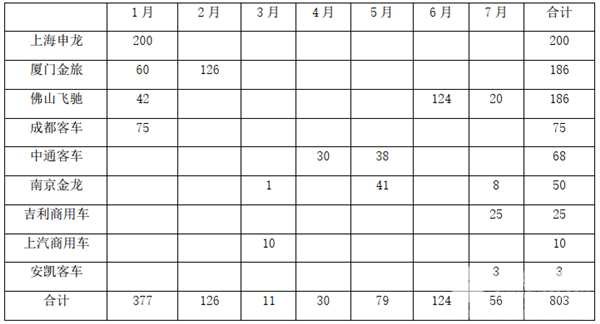 根据上牌信息,2020年1-7月主流车企各月新能源客车销量: