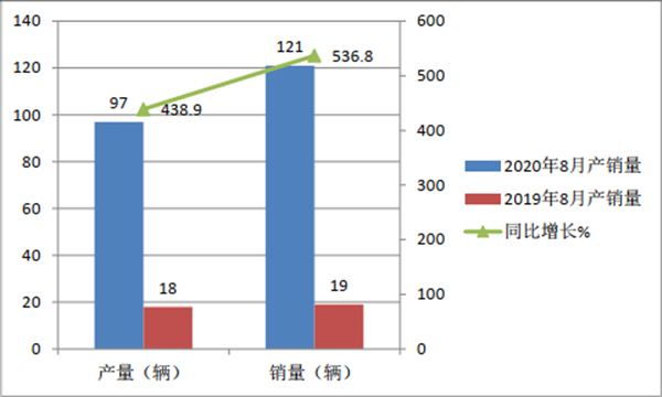 特点二、2020年8月燃料电池是客车产销同比也呈现大幅度增长态势
