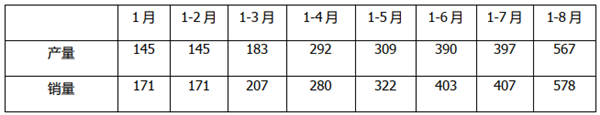 可见,在2020年1-8月各月产销数据中,1月均为最高,8月产量位居第三、销量位居第二,回暖迹象初现。