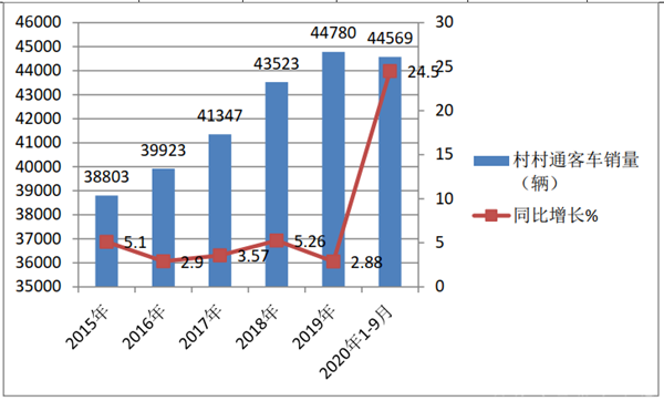 在2020年1-9月,农村客车市场销量44569辆,接近去年全年销量,同比同比增长24.5个百分点。在今年疫情大肆蹂躏下,农村客车市场不但没有下降,反而逆势增长超2成;占据同类车型轻客市场的比例也达到了20.5%。也就是说2020年前三季度,无论是销量还是同比增幅,农村客车市场均创近年同期新高。
