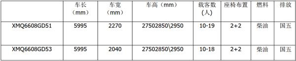 安凯客车两款车型的参数与中通客车两款车型都差不多,以重点的5.99米车型为基础,6.6米车型从其基础拉长得来,保持造型、车辆宽度一致,节省开发成本。都是5.99米且载客数<20人符合B照可开的车型。