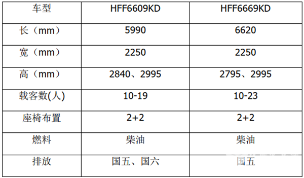 安凯客车在这一领域有HFF6609KD、HFF6669KD,长度为5.99米、6.6米。