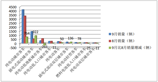 9月纯电动客车销量比8月增加764辆,是9月新能源客车类别中增量第二大的品种。其占据9月新能源客车总增量的45.75%,环比增长22.8%;