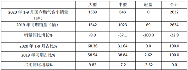 那么,已经执行一年多的国六标准的燃气客车,在2020年前三季度销量如何?市场有哪些特点?这是目前业内很多人士关注的问题。