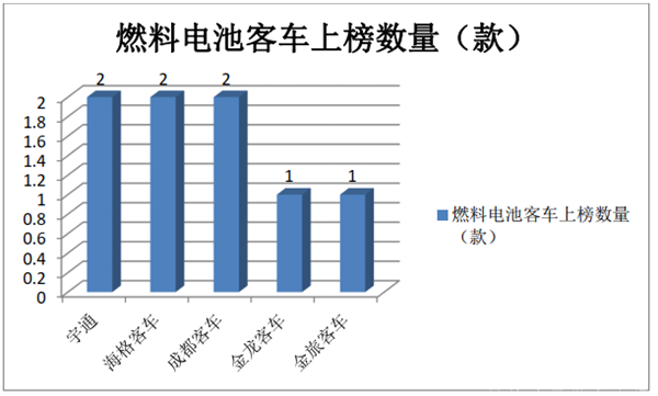 可见,5家上榜的8款燃料电池客车车型中,1款是燃料电池客车底盘,5款燃料电池城市客车,1款燃料电池公路客车,1款燃料电池低入口城市客车。