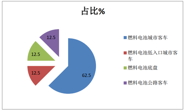 上图可见,在按目标用途划分,上榜的燃料电池客车车型中,燃料电池城市客车占比62.5%,占据绝对的优势主导地位。
