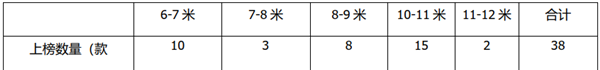 特点五、第340批公告中,10-11米车型上榜15款,占比近4成,为最大,其次是6-7米段上榜10款,占比26.3%,再次是8-9米段上榜8款,占比21.1%
