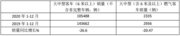 特点一、2020年国六燃气客车销量同比降幅小于大中型客车降幅6.13个百分点,跑赢2020年大中型客车市场大盘