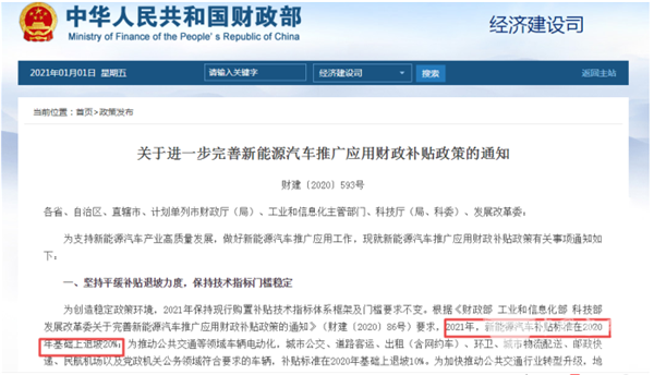 根据国家四部委2020年年底发布的《关于进一步完善新能源汽车推广应用财政补贴政策的通知》, 2021年新能源客车补贴在2020年基础上退坡20%(公共领域退坡10%),这必然加大新能源客车的成本。