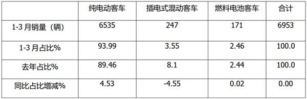2021年一季度按技术路线划分,新能源客车销量结构(数据来源:上牌信息):