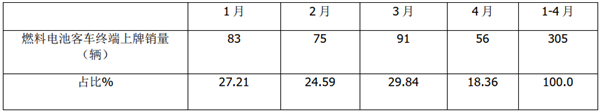 2021年前4月燃料电池客车市场特点简析