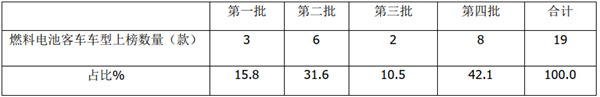 根据工信部数据,2021年发布的4批新能源客车推荐目录中燃料电池客车上榜车型数量统计: