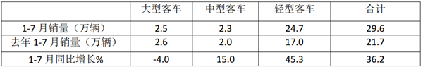 根据中汽协数据,2021年1-7月大中轻客车销量及同比: