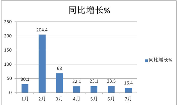 ●从1-7月各月销量看,各月销量忽高忽低(6月销量最高,2月销量最低),跌宕起伏;从同比增幅看,1-7月销量同比均为正增长,可谓“全线飘红”,其中2月增幅最大,7月增幅最小