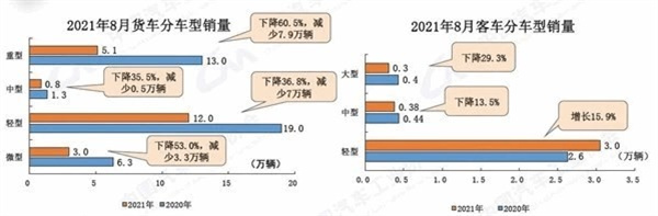 根据中汽协数据,2021年8月及1-8月客车、货车、商用车同比增幅比较: